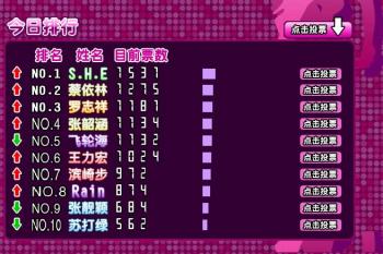 第一輪票選後,最後以下十個候選進入了第2輪的PK哦,港臺明星組合以很大優勢壓倒了內地明星哦,他們分別是:S.H.E、張韶涵、蔡依林、王力宏、羅志祥、濱崎步、飛輪海、Rain、蘇打綠、張靚穎。如今第二輪的瘋狂拉票活動已經全面展開(點擊進入),支持你們心中的偶像,不僅有機會獲得《LUNA》啟動碼、還有IPOD以及超級大獎:雙人同行明星見面會資格!
